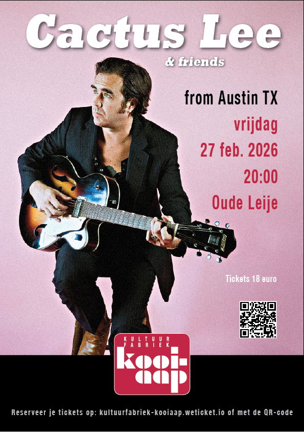 Op vrijdagavond 27 februari om 20. 00 uur staat Cactus Lee met band op het podium van de Kultuurfabriek Kooi-Aap aan de Leijesterhegedijk 27 B in Alde Leie. Het optreden begint om 20.00 uur De prijs per kaartje is 18 euro.